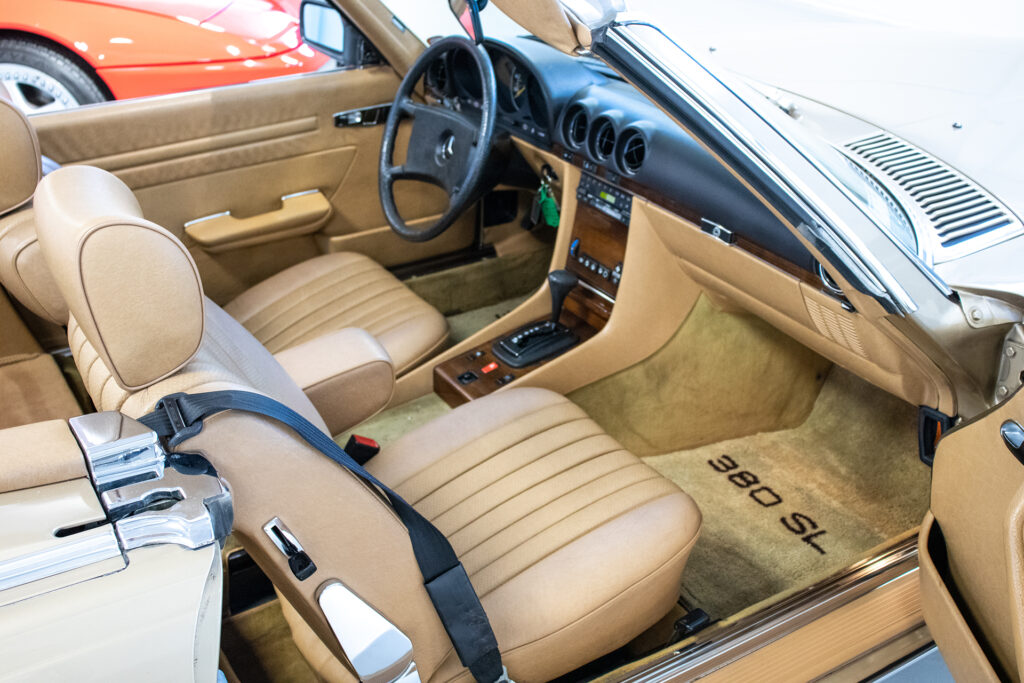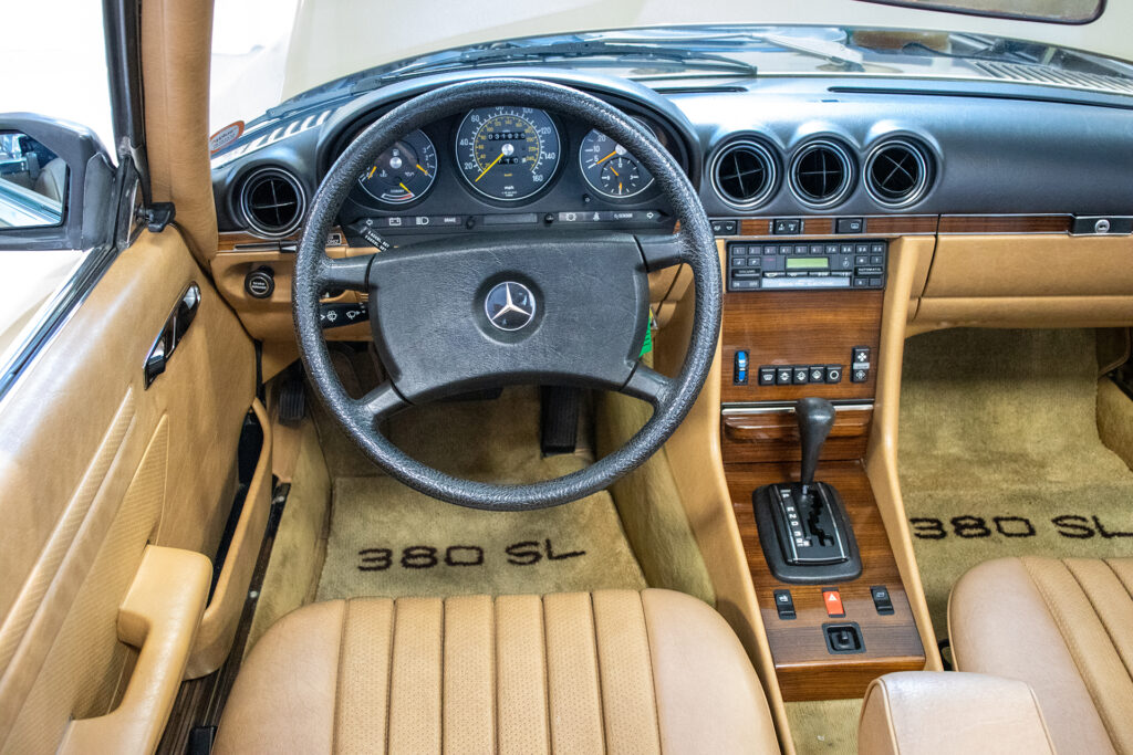 Ekstrem flot og meget velkørende MB SL380 med den fede V8 motor og sprøde lyd, krus ud i sommerlandet og få lidt vind i håret i denne perle, masser af dokumentation fra den tidligere ejer i Californien bla. regning på bilen fra den var ny, original service bog osv. ring for at booke en prøvetur se mere på www.tage-nielsen.dk 004540515044