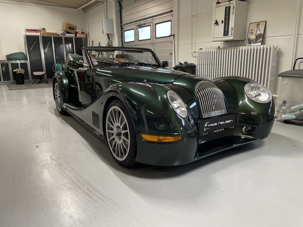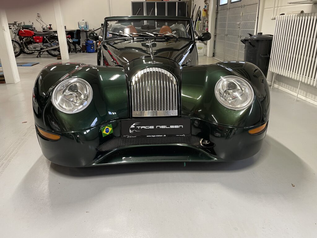 Til salg: En enestående Morgan Aero 8 med en kraftfuld 4,4 liters BMW-motor, der leverer 333 hk og 450 nm. Denne skønhed har kun haft én ejer fra ny, og den er super flot og utroligt velkørende. Med denne bil kan du køre langt uden at blive helt mørbanket – det er en Morgan, der virkelig kan køre på landevejen.
