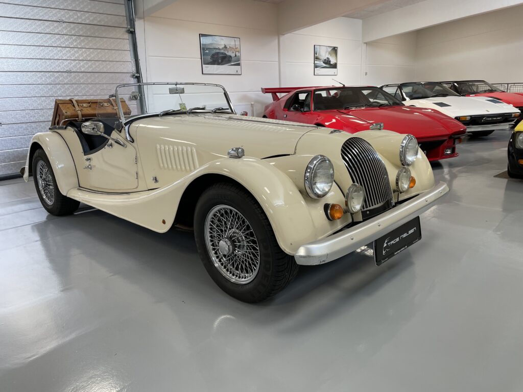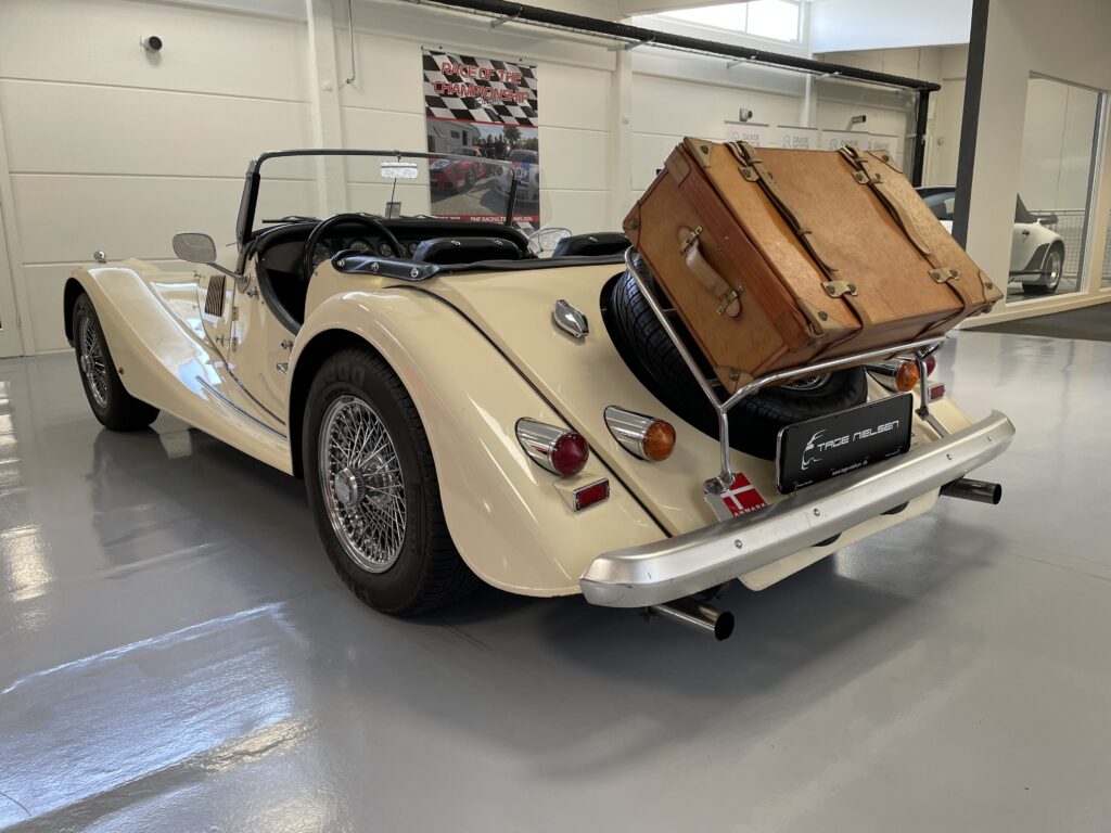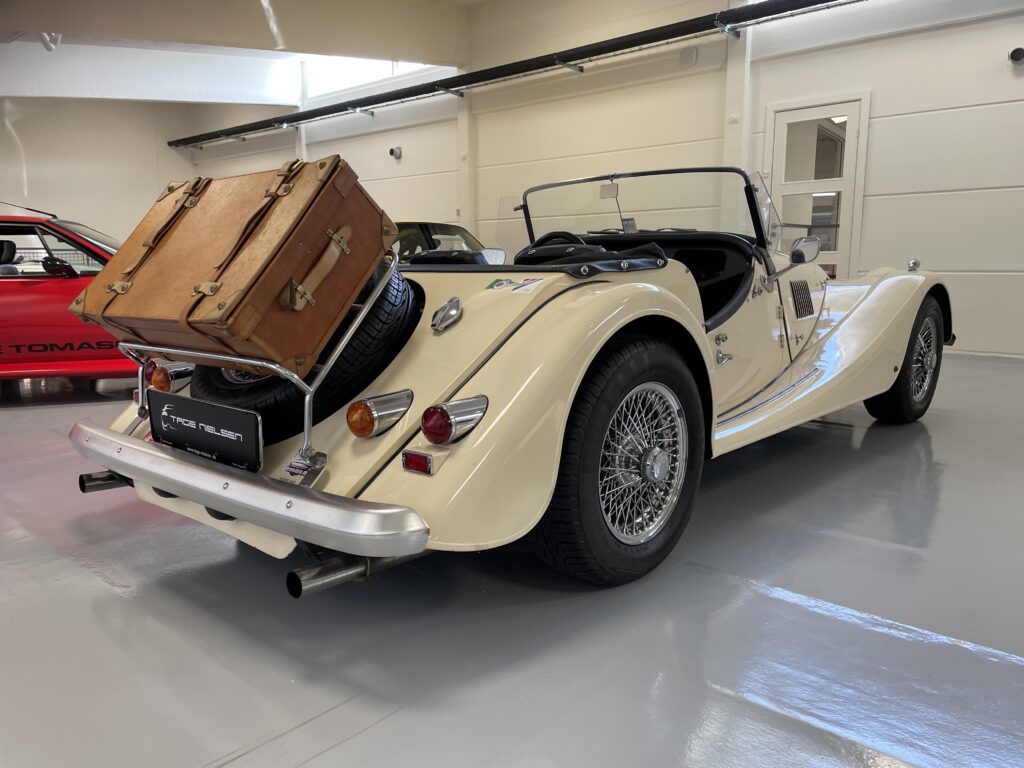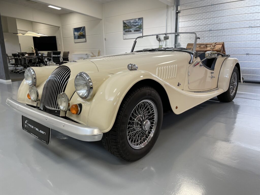 Super flot Morgan +8 med den helt rette sprøde lyd fra udstødningen, Morganen står i flot original stand med den helt rigtige patina, lige klar til at køre ned i de Østrigste/Italienske Alper, eller en lille tur til vores fantastiske steder i DK, der medfølger en Mappe med fuld dokumentation og et hav af regninger, lækker kufert medfølger til at pakke tøjet i, så det er bare med at komme afsted. Bilen blev importeret fra tyskland i 2007 og har haft samme entusiatiske ejer lige siden. Ring for fremvisning på 40515044 mere på www.tage-nielsen.dk